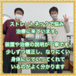 起床時から首の痛みに悩まされ、日々症状が続き辛い思いをされていた方からの声をご紹介します。   【ストレートネックで悩み治療に来ています。装…